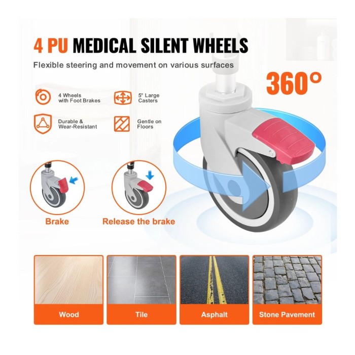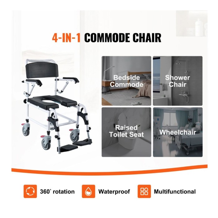 VEVOR Commode Wheelchair with 4 Locking Wheels, Footrest, Folding Arms, Adjustable Height, 3 Levels, 5L Removable Bucket, 350 lbs Capacity for Adults and Seniors