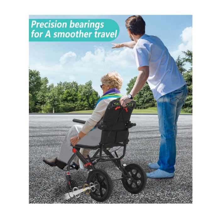 Adult Lightweight Push WheelchairSafe and Stable Ultralight Aluminum WheelchairAirline Approved Folding Transport Wheelchair